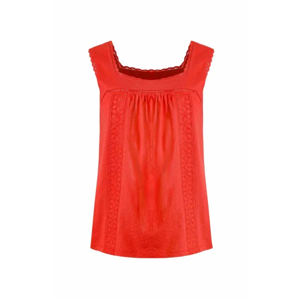 Weird Fish Dames/Dames Chelle Organic Cotton Square Neck Vest Top (Tango rood) Prijzen