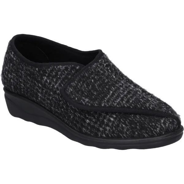 De klittenband gelaat een goede grip en een vlotte instap in de schoen. Met de H-schoen breedte is de slipper Nice 105 bijzonder comfortabel. Thuis is de slipper een gezellige begeleider.