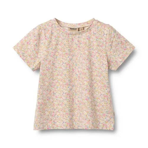 Het lichtroze Wheat meisjes T-shirt Manna is een luchtig shirt met korte mouwen, geschikt voor actieve dagen. De zachte stof met katoen en een beetje elastaan beweegt soepel mee, zodat spelen, rennen en klimmen vanzelf gaat. De all-over bloemenprint in geel en blauw geeft een vrolijke uitstraling die meteen opvalt, zonder te druk te zijn.Vrolijke details voor elke dag Lichtroze T-shirt met korte mouwen en ronde hals All-over bloemenprint in geel en blauw voor een speelse look Gemaakt van 95 procent katoen en vijf procent elastaan voor een zachte, soepele stof Rechte mouwen die lekker luchtig vallen Geschikt voor peuters, kleuters en schoolkinderen Geschikt als co-ord set, goed te combineren met bijpassende Wheat items Geen zakken, waardoor het model rustig en comfortabel blijftComfortabel in de klas en tijdens het spelenDit T-shirt is ideaal voor alledaags gebruik, van schooldagen tot logeerpartijtjes. De ronde hals sluit comfortabel aan en de soepele stof biedt genoeg bewegingsvrijheid voor spelletjes op het schoolplein of in de tuin. Het shirt is makkelijk te combineren met een jeans, korte broek of rok, waardoor het een praktische basic in de kast is.Scandinavische kinderstijl van WheatWheat staat bekend om kinderkleding met een duidelijke Scandinavische signatuur, waarin comfort en doordachte details centraal staan. De prints zijn vrolijk en speels, maar blijven rustig en tijdloos. Met kleding van Wheat kies je voor items die comfortabel zitten en er verzorgd uitzien, seizoen na seizoen.Een T-shirt dat elke dag weer klaarhangt voor nieuwe avonturen.