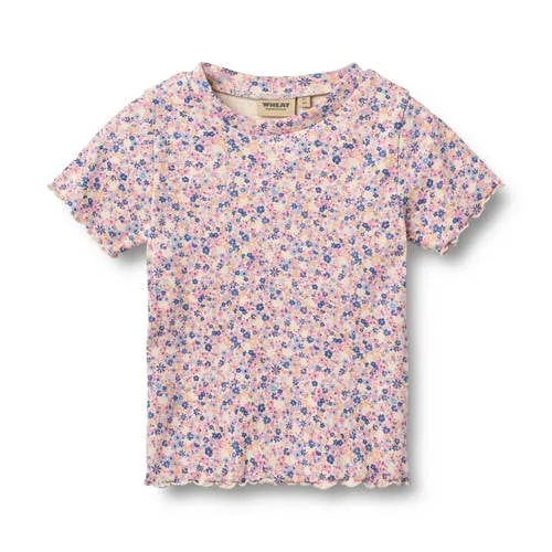 Vrolijk de kledingkast van je kind op met het Wheat T-shirt Alicia voor meisjes. Dit korte mouwen shirt heeft een all over bloemenprint in roze, blauw en ecru en geeft elke outfit direct een zachte, speelse uitstraling. De ronde hals en rechte mouwen zorgen voor een ontspannen pasvorm waar je kind zich de hele dag vrij in kan bewegen.Praktische details voor elke dag Zacht materiaal met katoen dat zacht aanvoelt op de huid Een beetje elastaan voor een flexibele, comfortabele fit Korte mouwen, ideaal voor de warmere dagen of onder een vest All over bloemenprint in roze, blauw en ecru voor een frisse look Ronde hals die makkelijk over het hoofd gaat Co-ord set: te combineren met bijpassende items uit dezelfde lijn Geschikt voor peuters en schoolkinderenFijn T-shirt voor school en vrije tijdDit Wheat T-shirt is een handige basis voor alledaagse momenten. Draag het naar school, tijdens een speelafspraak of op een vrije dag thuis. Het shirt staat goed op een korte broek in de zomer en onder een vest of trui wanneer het wat frisser is.De Scandinavische stijl van WheatWheat is een Scandinavisch merk dat bekendstaat om kinderkleding met zachte kleuren, doordachte prints en comfortabele pasvormen. De collecties zijn gemaakt met aandacht voor detail, zodat kinderen onbeperkt kunnen spelen en bewegen in kleding met een verzorgde uitstraling en voldoende bewegingsruimte.Een luchtig T-shirt met een zachte print, klaar voor elke speeldag.