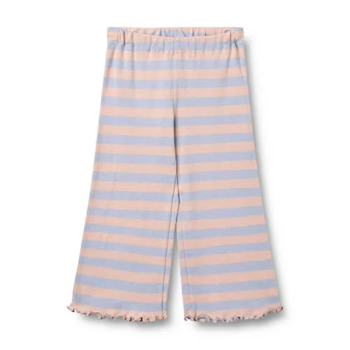 Voor elke speelse dag is de Wheat meisjes broek Ela een fijne basis. Deze lange broek in blauw met lichtroze strepen heeft een luchtige uitstraling en voelt zacht aan, doordat deze gemaakt is van 100% katoen. Het model is comfortabel om te dragen en sluit mooi aan zonder te knellen, ideaal voor schooldagen, speelafspraken en uitstapjes.Zachte katoen en speelse details Gemaakt van 100% katoen, voelt zacht en soepel aan op de huid Blauw/lichtroze streeppatroon voor een frisse, kinderlijke look Lange pijpen, geschikt voor verschillende seizoenen Elastische tailleband voor makkelijk aan- en uittrekken Zonder zakken voor een rustige, slanke vorm Ruches aan de taille zorgen voor een subtiel, speels detail Onderdeel van een co-ord set, leuk te combineren met bijpassende items uit dezelfde serieElke dag draagbaarDeze casual broek past goed bij T-shirts, truien of een luchtige blouse. Door de elastische tailleband trekt je kind de broek zelf eenvoudig aan. Het katoenen materiaal is prettig voor lange dagen, zowel binnen als buiten.De kindvriendelijke stijl van WheatWheat staat bekend om kinderkleding met zachte materialen, doordachte pasvormen en een rustige, Scandinavische stijl. De ontwerpen zijn gemaakt voor actieve kinderen, met genoeg bewegingsvrijheid en herkenbare, tijdloze prints. Zo combineert Wheat praktische kleding met een heldere en verzorgde uitstraling.Een comfortabele, gestreepte broek waar je kind zich de hele dag vrij in kan bewegen.