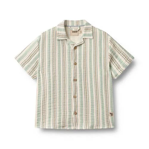 Voor een frisse zomerlook is dit casual overhemd voor jongens van Wheat een luchtige basis. Het groene en beige streepdessin geeft meteen een rustige, stoere uitstraling en de korte mouwen maken het geschikt voor warme dagen. Gemaakt van 100 procent katoen voelt het luchtig en zacht aan op de huid, prettig voor drukke dagen vol spel en beweging.Praktische details voor elke dag Gemaakt van 100 procent katoen voor een zachte, ademende touch Groen/beige streeppatroon met subtiele textuur voor een verzorgde look Korte mouwen, fijn voor lente en zomer Reverskraag voor een ontspannen, maar nette uitstraling Knoopsluiting over de hele voorkant, makkelijk aan en uit te trekken Casual model zonder borstzak, waardoor het rustig oogt Onderdeel van een co-ord set, voor wie graag een complete outfit kiest Geschikt voor peuter, kleuter en schoolkind, verkrijgbaar in meerdere matenStoer en luchtig op school of in het weekendDit Wheat overhemd is goed te dragen op een korte broek of een lichte chino. Praktisch voor een schooldag, een verjaardag of een dagje weg. De katoenen stof beweegt makkelijk mee en blijft comfortabel, ook als het wat warmer wordt.Wheat: Scandinavische eenvoud voor kinderenWheat staat bekend om kinderkleding met een rustige stijl en doordachte pasvormen. De ontwerpen zijn geïnspireerd op Scandinavische eenvoud, met zachte kleuren en comfortabele materialen waar kinderen zich vrij in kunnen bewegen. Zo combineert Wheat een verzorgde uitstraling met praktisch draaggemak.Een luchtig overhemd dat er netjes uitziet en tegelijk klaar is voor elke speeldag.