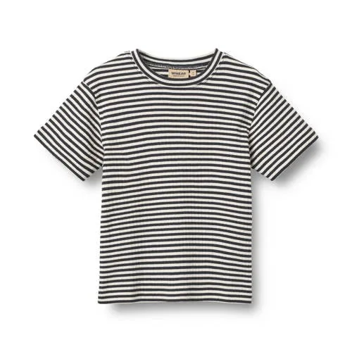 Wheat gestreepte T-shirt donkerblauw rib gebreid