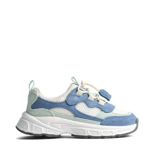 Deze wit/blauwe jongens sneakers van Wheat combineren een sportieve look met doordacht comfort, speciaal voor peuters en kleuters die de hele dag in beweging zijn. De lage sneaker heeft een chunky rubberen zool die er stoer uitziet en tegelijk goede grip biedt, of je kind nu rent, klimt of speelt.Praktische details voor actieve voeten Gemaakt van 60% suède en 40% mesh voor een stevige maar toch soepele pasvorm Ademende mesh stukken zorgen voor extra ventilatie tijdens het spelen Normale leest, ideaal voor de meeste kindervoeten Rubberen buitenzool met profiel voor goede grip op verschillende ondergronden Vetersluiting zodat de schoen goed aansluit rond de voet Katoenen voering die zacht aanvoelt en prettig draagt Leren binnenzool voor een natuurlijk gevoel onder de voet Chunky zool voor een moderne, sportieve uitstralingElke dag klaar voor avontuurDeze Wheat sneakers zijn gemaakt voor dagelijks gebruik, van de eerste stapjes buiten tot drukke dagen op het schoolplein. De combinatie van suède en mesh zorgt voor steun waar dat nodig is en extra luchtigheid op de wreef. Dankzij de veterluiting blijft de schoen goed op zijn plek, ook als er flink gerend wordt.Wheat: Scandinavisch design voor kinderenWheat staat bekend om kinderkleding en schoenen met een Scandinavische uitstraling, waar comfort en praktische details centraal staan. Met aandacht voor pasvorm en materialen maakt Wheat producten die meegaan in het ritme van kinderen, van spelen tot ontdekken.Een sportieve, comfortabele sneaker die moeiteloos meeloopt met elke speeldag.