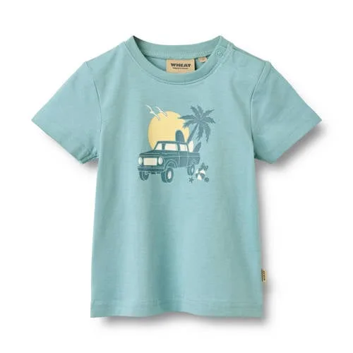 Voor de allerkleinsten is comfort het belangrijkst. Dit blauwe Wheat jongens T-shirt met korte mouwen is daar helemaal op afgestemd. Het shirt is gemaakt van 100% katoen, voelt zacht aan op de huid en is daardoor prettig om de hele dag te dragen. De ronde hals en de rustige printopdruk geven het een ontspannen, speelse uitstraling die goed past bij baby en new born outfits.Praktische details voor elke dag Gemaakt van 100% katoen, zacht en ademend voor de gevoelige babyhuid Korte mouwen, ideaal voor warmere dagen of als laagje onder een vest Comfortabele ronde hals die niet knelt Handige drukknoopsluiting, waardoor aan- en uitkleden makkelijker gaat Blauwe kleur met printopdruk voor een speelse, kinderlijke look Geschikt voor de maatboog Baby en New BornFijn om te dragen, makkelijk te combinerenDit T-shirt is een praktische basic voor elke dag. Combineer het eenvoudig met een zachte broek of een comfortabele legging. Door de soepele stof kan je kindje vrij bewegen, slapen en spelen.Scandinavische eenvoud van WheatWheat staat bekend om kinderkleding met een duidelijke Scandinavische signatuur. De ontwerpen zijn rustig en functioneel, met veel aandacht voor draagcomfort en mooie kleuren. Zo krijgt je kind kleding die er verzorgd uitziet en prettig voelt, elke dag opnieuw.Een zachte, praktische basic voor de kledinglade van je kindje.