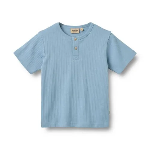 Dit blauw jongens T-shirt van katoen van Wheat is een praktische basic voor elke dag. De korte mouwen en de ronde hals geven het shirt een rustige, tijdloze uitstraling. Door de effen kleur is het T-shirt makkelijk te combineren met jeans, shorts of een jogger. Het zachte materiaal van 100% katoen voelt soepel aan op de huid, wat prettig is tijdens schooldagen, speelafspraken en vrije momenten thuis.Comfortabele details voor elke dag Gemaakt van 100% katoen, voelt zacht en ademend aan Korte mouwen, geschikt voor warmere dagen of onder een vest Ronde hals die prettig aansluit zonder te knellen Knoopsluiting, helpt bij makkelijk aan- en uittrekken Effen blauwe kleur, eenvoudig te combineren met andere kleding Geschikt voor peuters, kleuters en schoolkinderenPraktisch T-shirt voor peuter en schoolkindDit Wheat T-shirt is ontworpen voor peuters, kleuters en schoolkinderen die veel bewegen. De knoopsluiting maakt omkleden eenvoudiger, ook als je kind nog hulp nodig heeft. Door de effen blauwe kleur past het shirt goed bij sportieve en casual outfits, van de opvang tot het schoolplein.Wheat: kinderkleding met aandachtWheat richt zich op kinderkleding met een rustige, doordachte stijl en comfortabele pasvormen. Zachte stoffen en praktische details spelen een belangrijke rol, zodat kinderen zich vrij kunnen bewegen tijdens hun dag. Met dit T-shirt kies je voor een praktische basic die aansluit bij het dagelijks leven van je kind.Een eenvoudige, zachte basic die vaak uit de kast gepakt wordt.