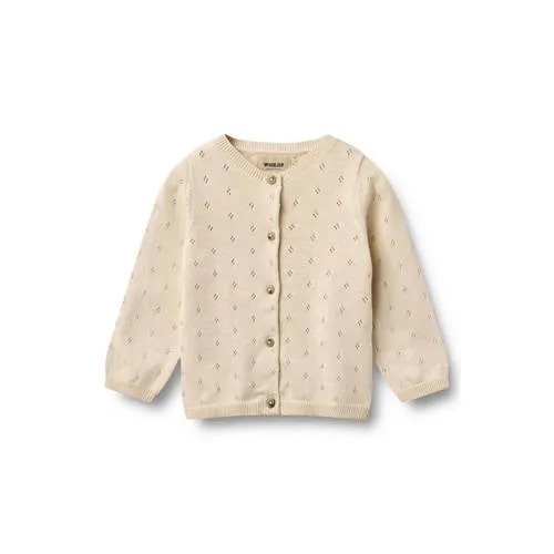 Het lichtbeige meisjes vest Maia van Wheat is een fijn gebreid vest dat zacht aanvoelt op de huid. Ideaal voor baby en newborn, om gemakkelijk over een romper of jurkje te dragen. De rechte pasvorm en de ronde hals geven een rustige, tijdloze uitstraling die bij veel outfits past. Door het open detail aan de voorkant oogt het vest luchtig en verfijnd, terwijl de lange mouwen zorgen voor extra warmte.Zachte laag voor elke dag Gemaakt van 100% katoen, zacht en comfortabel voor de gevoelige babyhuid Lichtbeige effen kleur, makkelijk te combineren met andere kledingstukken Fijn gebreid met open detail voor een subtiele, sierlijke look Lange rechte mouwen en rechte pasvorm voor genoeg bewegingsvrijheid Praktische knoopsluiting aan de voorkant, waardoor aan- en uitkleden eenvoudig gaat Wasbaar op 30 graden, geschikt voor regelmatig gebruik Geen zakken, waardoor het vest soepel en licht blijftComfortabel in gebruikDit gebreide vest is handig als extra laagje op koelere dagen, zowel binnenshuis als buiten. Het lichte materiaal maakt het ook geschikt om onder een jas te dragen, zonder dat het te dik wordt. Zo blijft je kind comfortabel, terwijl de outfit netjes en verzorgd oogt.De stijl van WheatWheat staat bekend om kinderkleding met zachte kleuren, fijne materialen en comfortabele pasvormen. De ontwerpen zijn praktisch in het dagelijks leven en houden rekening met de bewegingsvrijheid van kinderen. Met dit vest kies je voor een rustige, doordachte stijl waarin je kind prettig kan bewegen en spelen.Een zacht, licht vest dat elke baby-outfit rustig en verzorgd afmaakt.