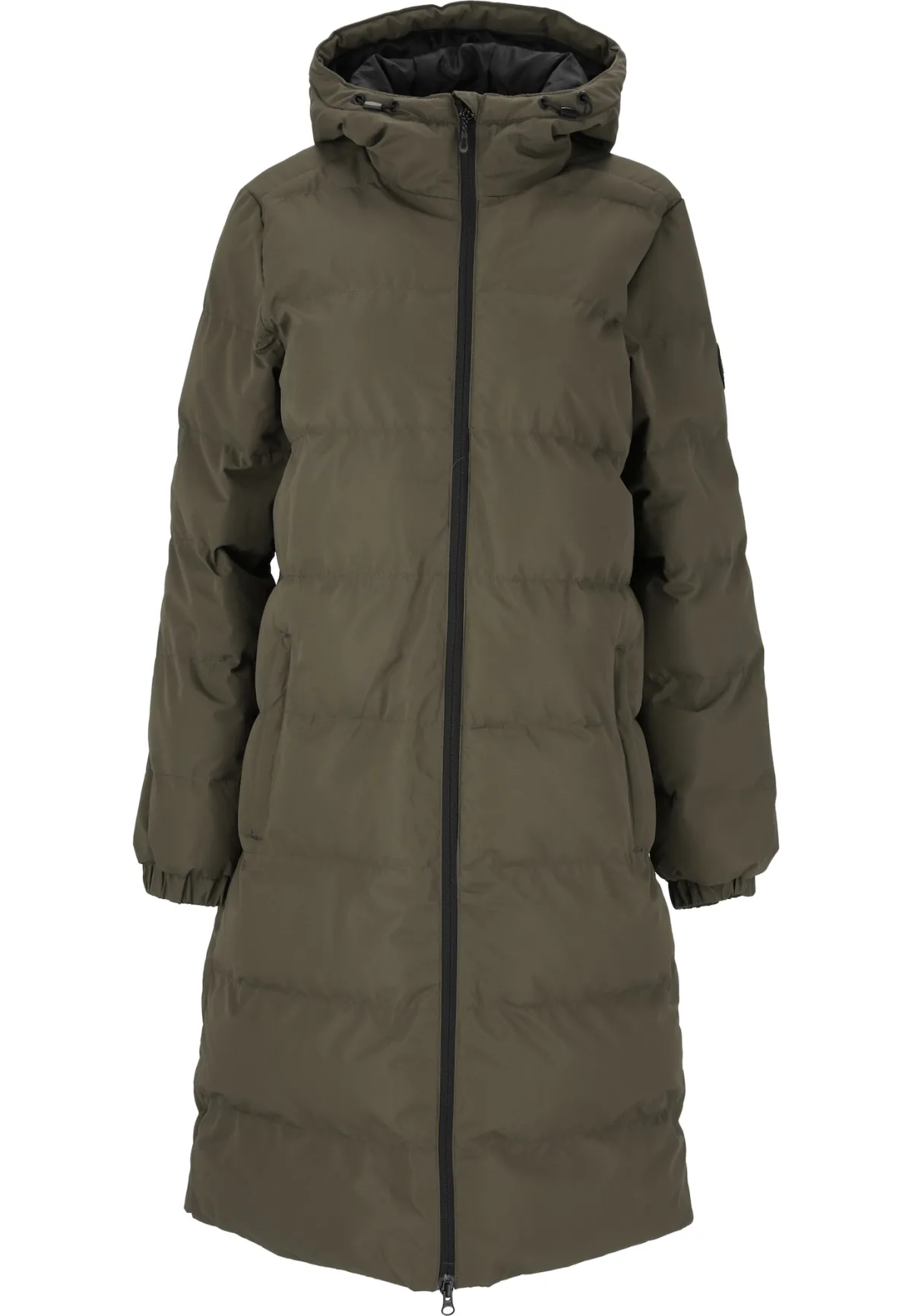 Type mantel: Gewatteerde jas; Design: Paspelzak; Type sluiting: Ritssluiting; Type jas: Gewatteerde jas; Voering: Warm gevoerd; Motief: Effen; Capuchon: Verstelbare capuchon, Met capuchon; Type jas: Gewatteerde korte jas; Details: Zipper-garage, Ritszakken aan de zijkant, Two-way rits; Pasvorm: Normale pasvorm; Lengte: Lange pasvorm
