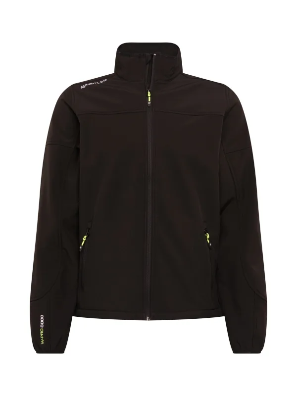 Design: Ritssluiting, Gevoerde zoom/rand, Elastische taille/zoom, Rechte zoom, Staande kraag, Ritszakken aan de zijkant, Siernaad; Type sluiting: Ritssluiting; Voering: Niet gevoerd; Materiaal: Softshell; Motief: Logoprint; Materiaal: Kunststof/rubber; Type jas: Softshell jas; Extra's: Fleece binnenvoering, Op staal naden, Vaste grip, Label print, Gelaste naden; Details: Met hoge stormkraag; Pasvorm: Normale pasvorm