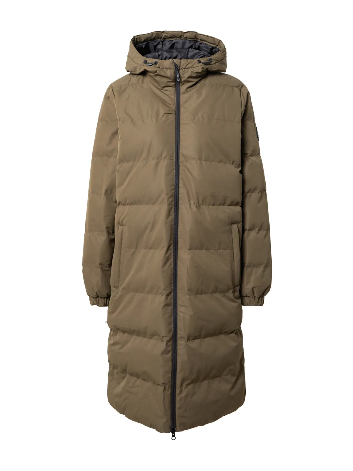 Type mantel: Gewatteerde jas; Design: Elastische taille/zoom, Gevoerde capuchon; Type sluiting: Ritssluiting; Type jas: Gewatteerde jas; Voering: Warm gevoerd; Motief: Effen; Capuchon: Verstelbare capuchon, Met capuchon; Type jas: Gewatteerde korte jas; Extra's: Label patch/label flag, Stiksels, Gladde stof; Details: Zipper-garage, Ritszakken aan de zijkant, Two-way rits; Pasvorm: Normale pasvorm; Lengte: Lange pasvorm