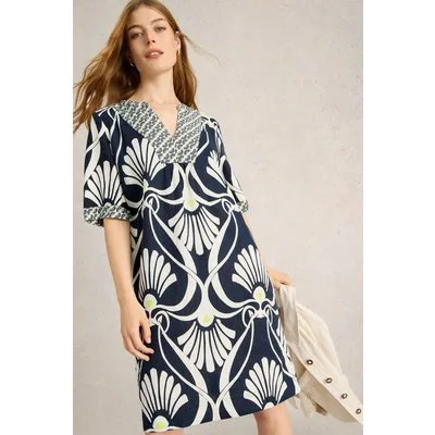 White Stuff Ash Linen Dress Navy Print Prijzen