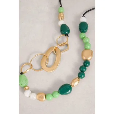 White Stuff Ayla Chunky Beaded Necklace Green Multi