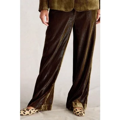 White Stuff Belle Wide Leg Velvet Trouser Dark Chartreuse Prijzen