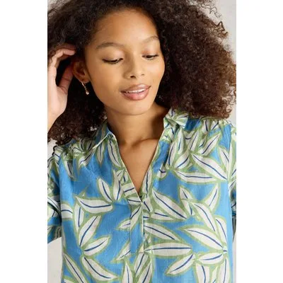 White Stuff Blake Linen Tunic Blue Print