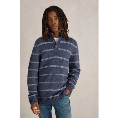 White Stuff Breton Stripe Button Neck Navy Multi
