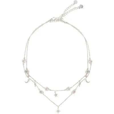 White Stuff Celestial Layered Necklace Silver Tone Metallic