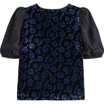 White Stuff Cleo Velvet Mix Top Black Print