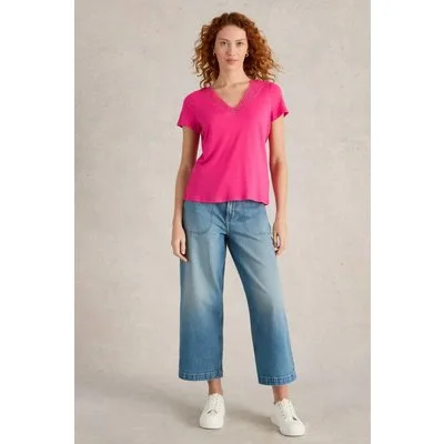 White Stuff Ellie Lace Tee Bright Pink Prijzen