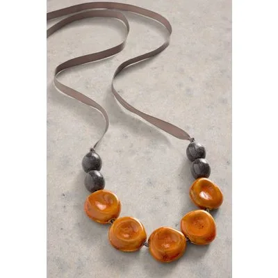 White Stuff Hibiscus Stone Necklace Orange Multi
