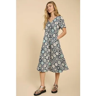 White Stuff Ivy Linen Mini Dress Blue Printed Prijzen