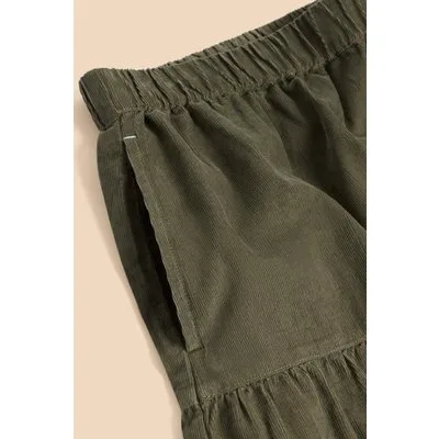 White Stuff Jade Tiered Cord Skirt Khaki Green