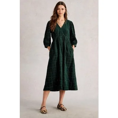 White Stuff Lucy Embroidered Cord Dress Dark Green