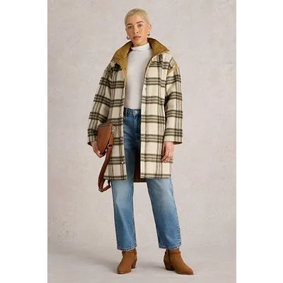 White Stuff Marlowe Reversible Check Coat Ivory Multi