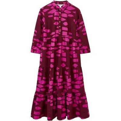 White Stuff Maya Tiered Shirt Dress Plum Print