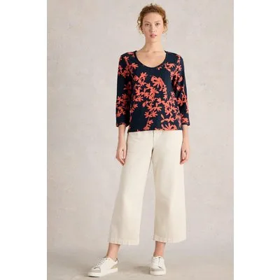 White Stuff Nadia 3/4 Sleeve Tee Blue Print