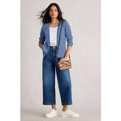 White Stuff Naria Linen Blend Cardi Mid Blue