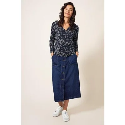 White Stuff Nelly Ls Tee Navy Print