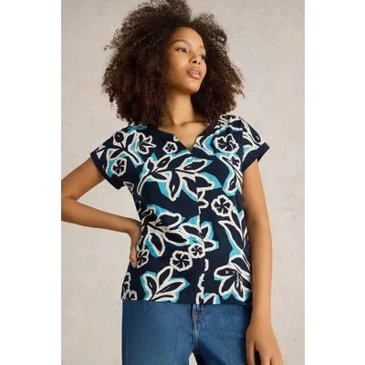 White Stuff Nelly Notch Neck Tee Navy Print Prijzen