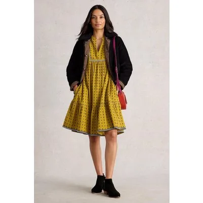 White Stuff Orla Embroidered Dress Chartreuse Multi
