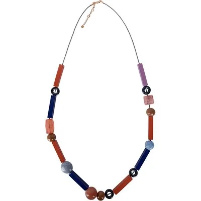 White Stuff Rectangular Bead Long Necklace Blue Multi