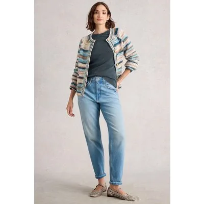White Stuff Sadie Long Sleeve Rib Tee Mid Blue