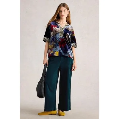 White Stuff Tia Velvet Wide Leg Crop Dark Teal
