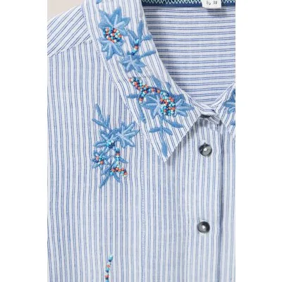 White Stuff Trailing Embroidered Shirt Blue Multi