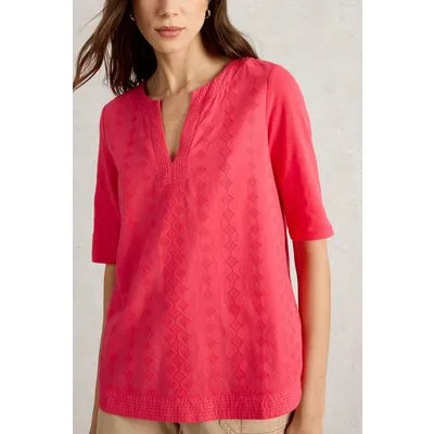 White Stuff Weaver Notch Neck Top Bright Pink Prijzen