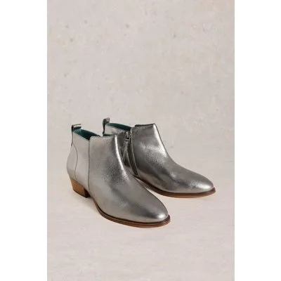 White Stuff Willow Leather Ankle Boot Pewter Metallic