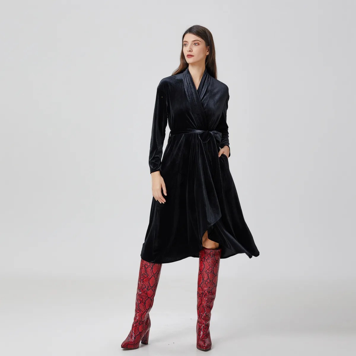 Wikkeljurk van fluweel en zoom met ruches