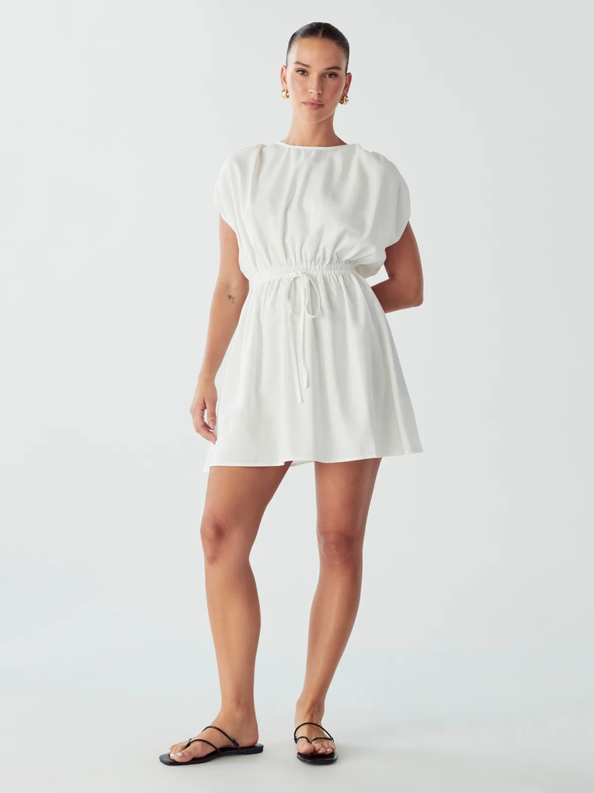 Design: Gevoerde zoom/rand; Materiaal: Linnen; Halstype: Ronde hals; Motief: Effen; Details: Gedrapeerd; Extra's: Verstelbare taille; Lengte: Kort/mini; Snit: Getailleerd; Pasvorm: Normale pasvorm; Armlengte: Kwartmouw
