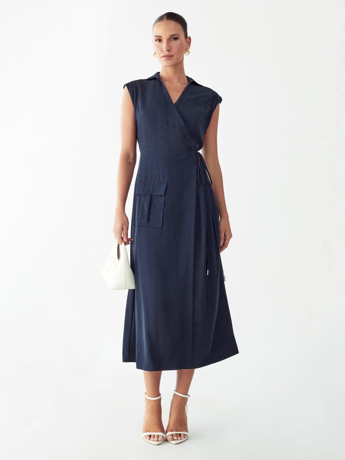 Design: Opgezette zakken; Materiaal: Katoen; Halstype: V-hals; Motief: Effen; Soort bandjes: Brede bandjes; Details: Wikkel design; Extra's: Op staal naden; Lengte: 7/8 lengte; Pasvorm: Normale pasvorm; Armlengte: Mouwloos