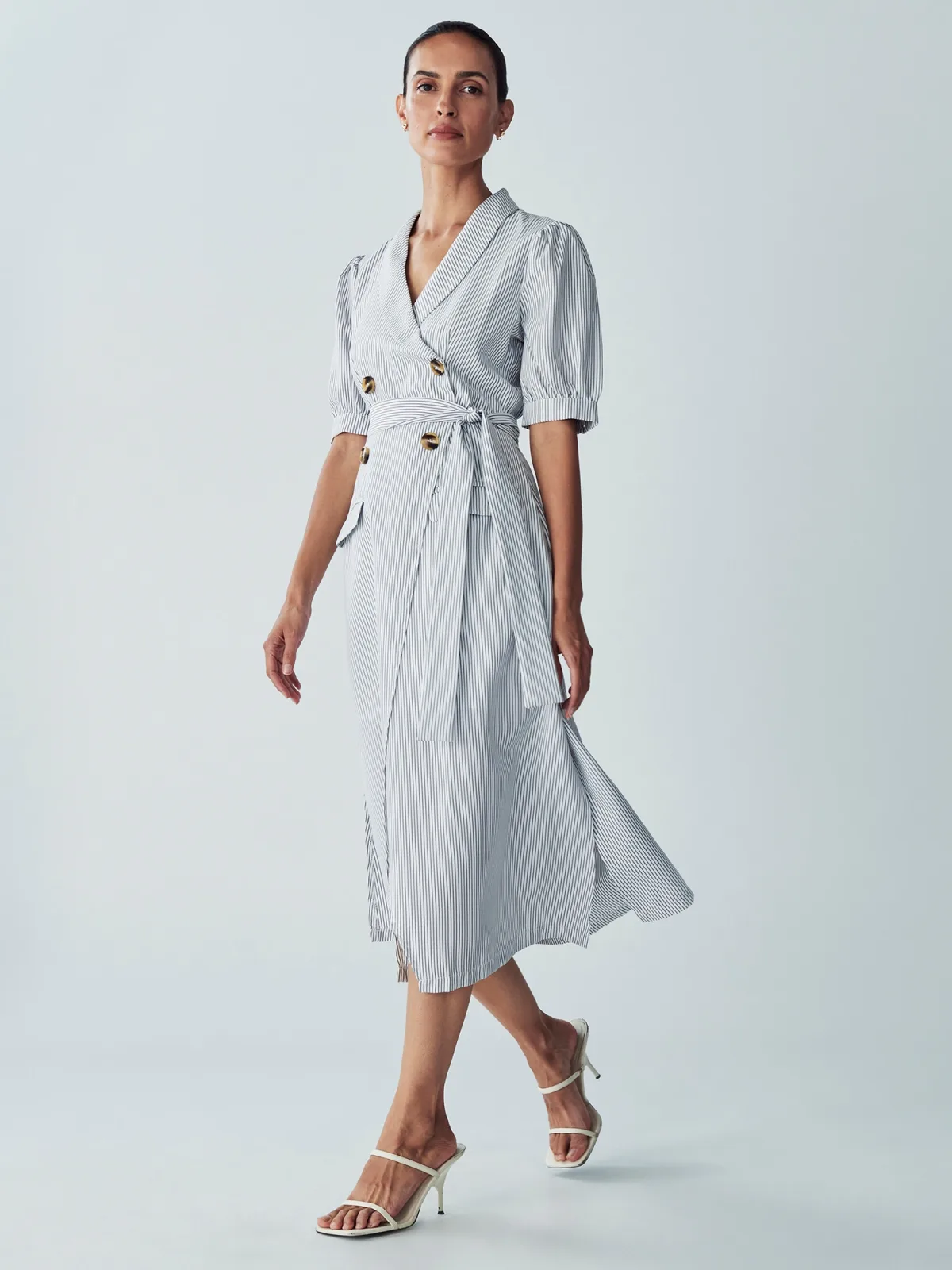 Design: 2-knoops manchetten, Knop placket, Met band/snoer, Pofmouwen; Type sluiting: Knoopsluiting; Motief: Gestreept; Details: Gedrapeerd, Wikkel design; Extra's: All-over patroon; Lengte: 3/4 lengte; Snit: Getailleerd; Pasvorm: Normale pasvorm; Armlengte: Halve mouw