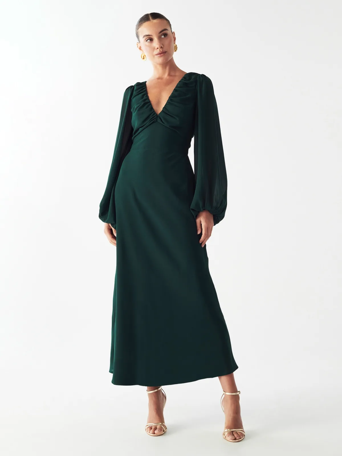 Design: Gevoerde zoom/rand, Elastische taille/zoom, Pofmouwen, Rug rits; Type sluiting: Ritssluiting; Halstype: V-hals; Motief: Effen; Details: Gedrapeerd; Extra's: Gladde stof, Voelt zacht aan; Lengte: 7/8 lengte; Snit: Getailleerd; Pasvorm: Normale pasvorm; Armlengte: Lange mouw