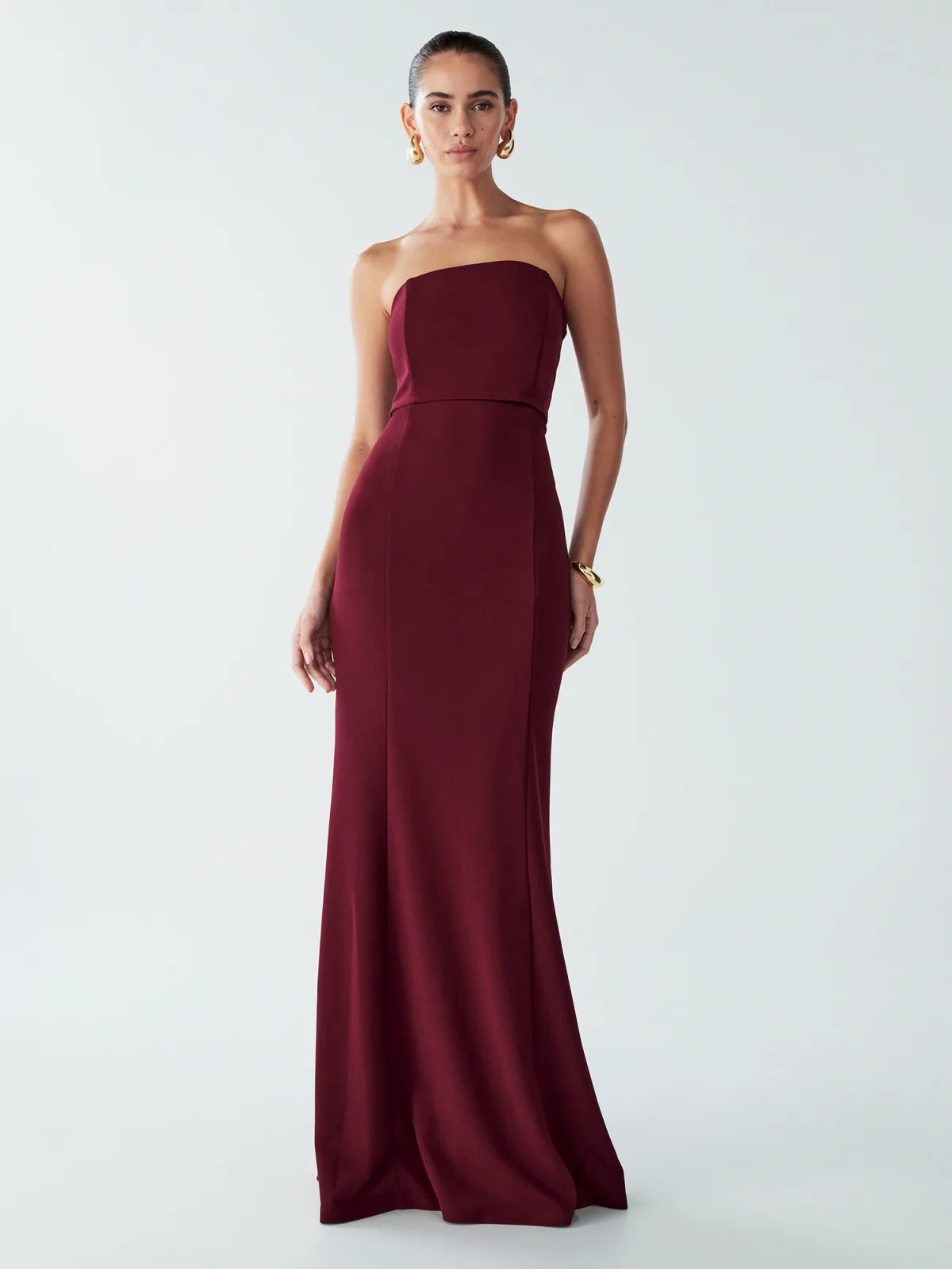 Design: Rug rits; Type sluiting: Ritssluiting; Motief: Effen; Soort bandjes: Bandeau; Extra's: Op staal naden; Lengte: Lang/maxi; Snit: Getailleerd; Pasvorm: Aansluitende pasvorm; Armlengte: Mouwloos