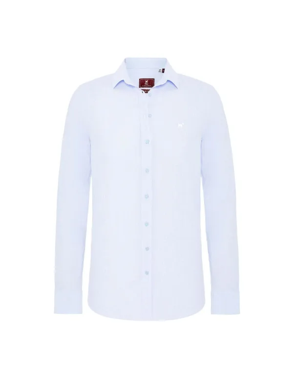 Blouse type: Klassieke blouse; Design: Gevoerde zoom/rand; Type sluiting: Knoopsluiting; Materiaal: Katoen; Motief: Mélange; Kraag: Kentkraag; Details: Borduursels; Extra's: Op staal naden; Pasvorm: Normale pasvorm; Armlengte: Lange mouw; Lengte: Normale lengte