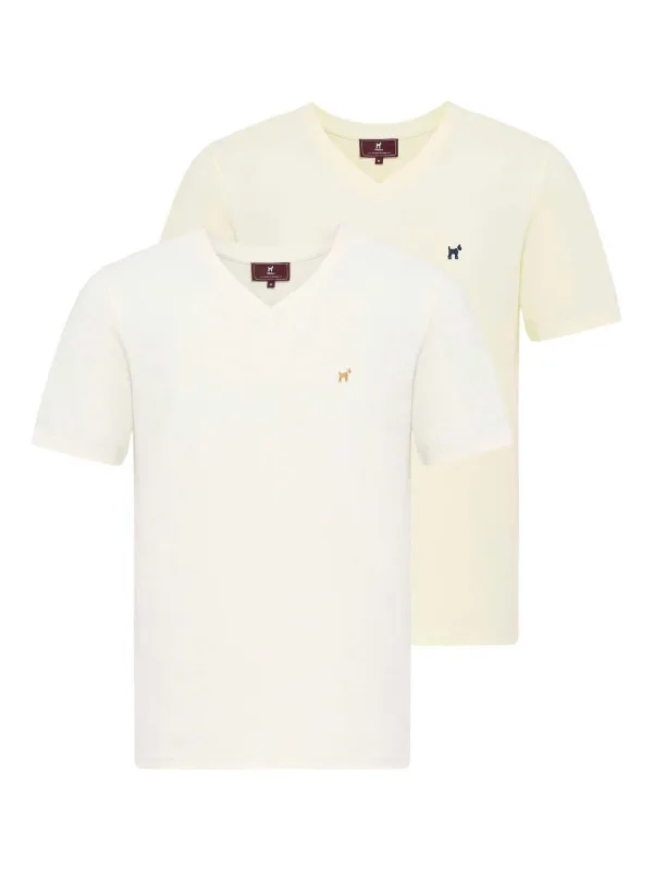 Design: Gevoerde zoom/rand, Geribbelde kraag, Rechte zoom, Recht model, Geribd ceintuurtje, Nektape; Type sluiting: Gesloten; Materiaal: Katoen; Halstype: V-hals; Motief: Effen; Extra's: Label borduurwerk, Voelt zacht aan; Pasvorm: Normale pasvorm; Aantal: 2 Pack; Armlengte: Kwartmouw; Lengte: Normale lengte