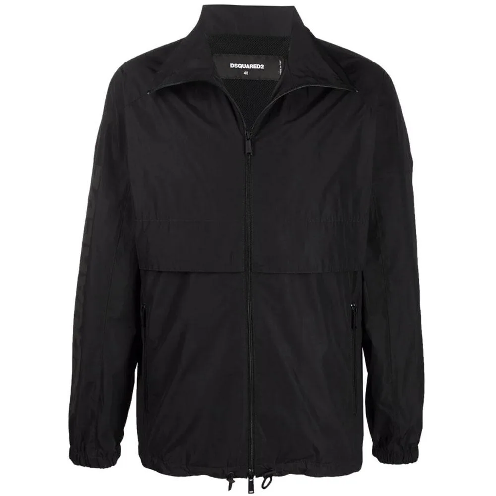 Windjacke mit Reißverschluss Dsquared2. Durchgehender Zwei-Wege-Reißverschluss. Hoher Kragen mit Reißverschluss. Verstellbare Taille. Elastische Bündchen. Seitliche Reißverschlusstaschen. Innentasche mit Öffnung. Markendruck auf einem Ärmel. Komposition: Außen: 100 % Polyester; Innen: 100 % Polyamid Pflege: Handwäsche. Bei niedriger Temperatur bügeln. Benutzen Sie keine Bleiche. Verwenden Sie keinen Trockner. Reinige chemisch nicht.