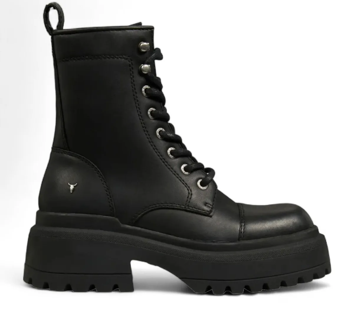 De Windsor Smith Destroy laarzen zijn een statement-makende toevoeging aan elke garderobe, met een opvallend, grof platformontwerp. Deze damesgevechtslaarzen zijn gemaakt van leer met een waxfinish en zijn uitgerust met een stijlvolle veterstrik en een handige binnenrits voor gemakkelijke toegang. Het opvallende neusontwerp en de stevige constructie zorgen voor zowel stijl als duurzaamheid. Premium Wax Finish Leather Upper: Duurzaam leer met een stijlvolle afwerking voor een stoere look. Comfortabele voering van niet-leer: Zachte voering verbetert de ademende werking voor comfort de hele dag door. Robuuste, dikke TPR-platformzool: Ontworpen voor superieure grip en stabiliteit op verschillende oppervlakken. Easy Entry Design: Binnenrits met bullpuller zorgt voor snel en moeiteloos dragen. Stijlvolle metalen veterogen: Voorzien van metalen Windsor Smith-veterogen voor extra flair en duurzaamheid. Handige leren treklip aan de achterkant: Verbetert de toegankelijkheid voor snel aan- en uittrekken. Veilig vetersysteem: Veterogen met 6 gaten en 2 haak-en-oogjes zorgen voor een aanpasbare pasvorm. Verhoogde hakhoogte: De hakhoogte van 55 mm voegt een gedurfde lift toe zonder in te leveren op comfort. Royale platformhoogte: het platform van 35 mm biedt extra demping en ondersteuning.