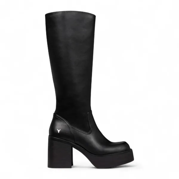 Windsorsmith Dames Zwarte Kunstleren Kniehoge Platform Hak Laarzen – Niche Prijzen